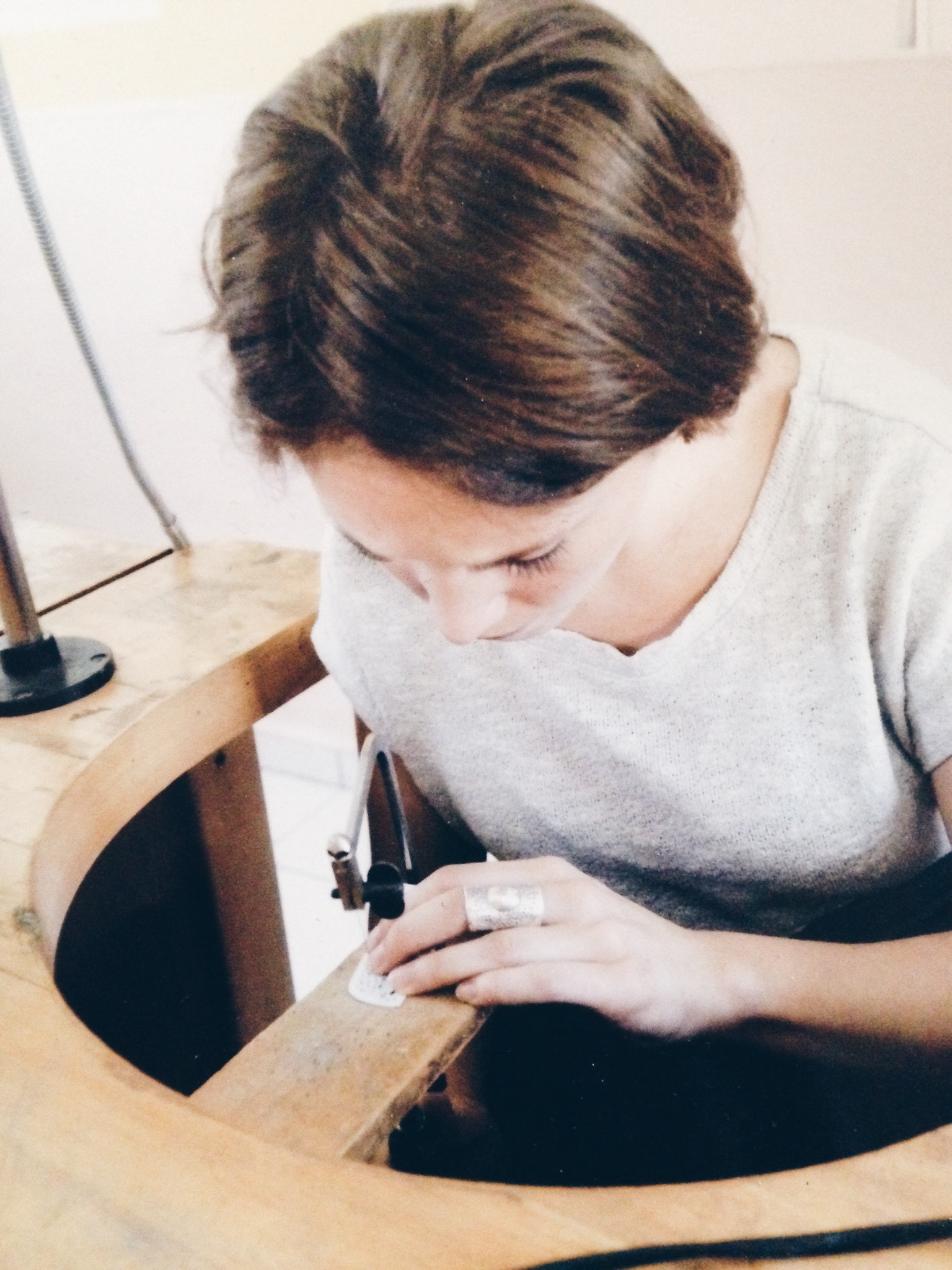 “A typical jeweler’s education consists of what we call ‘bench practices’ which are techniques used at the bench,” said Perluck. “A jeweler’s bench or desk is designed very specifically for things they would need to do. There’s a bench pin which is a piece of wood sticking out in the middle that you saw on, drill on, etc. For example, the first things I learned in that metalsmithing class at RISD was sawing through metal, fold-forming hollow shapes, soldering pieces together, stuff like that. Once you know the basics, then there are a million other possibilities. There are lots of machinery and specialized tools for doing almost anything.”