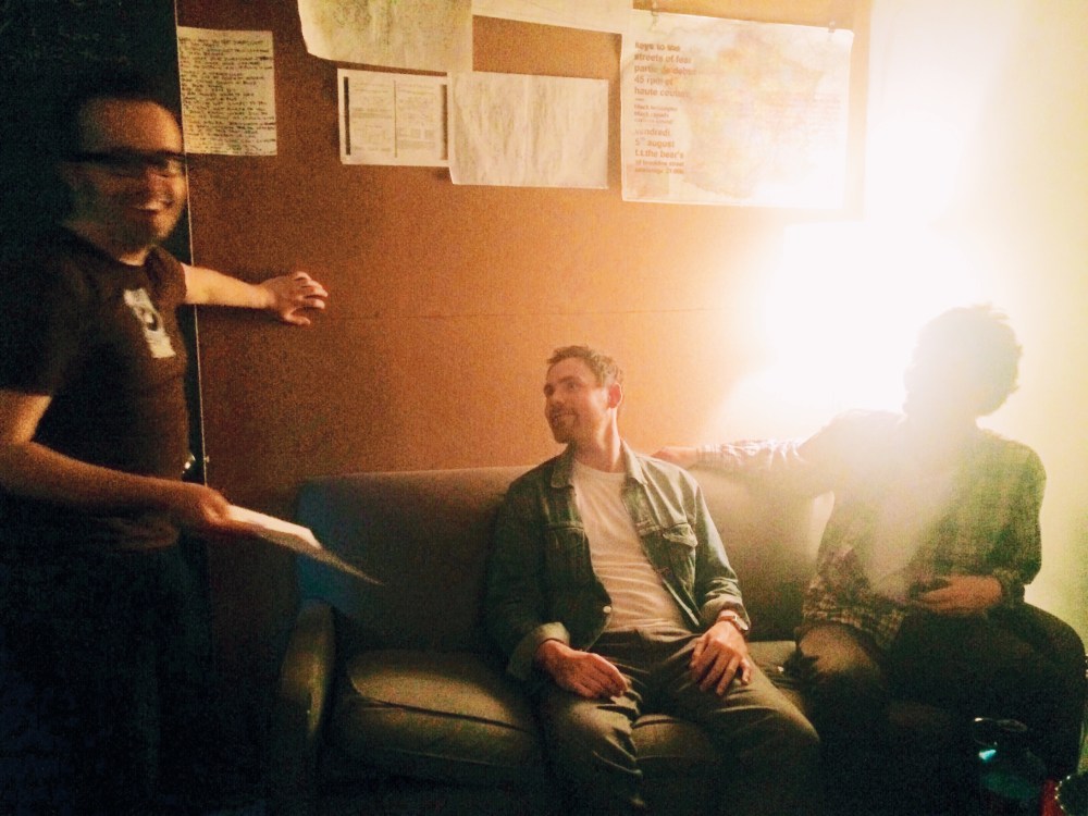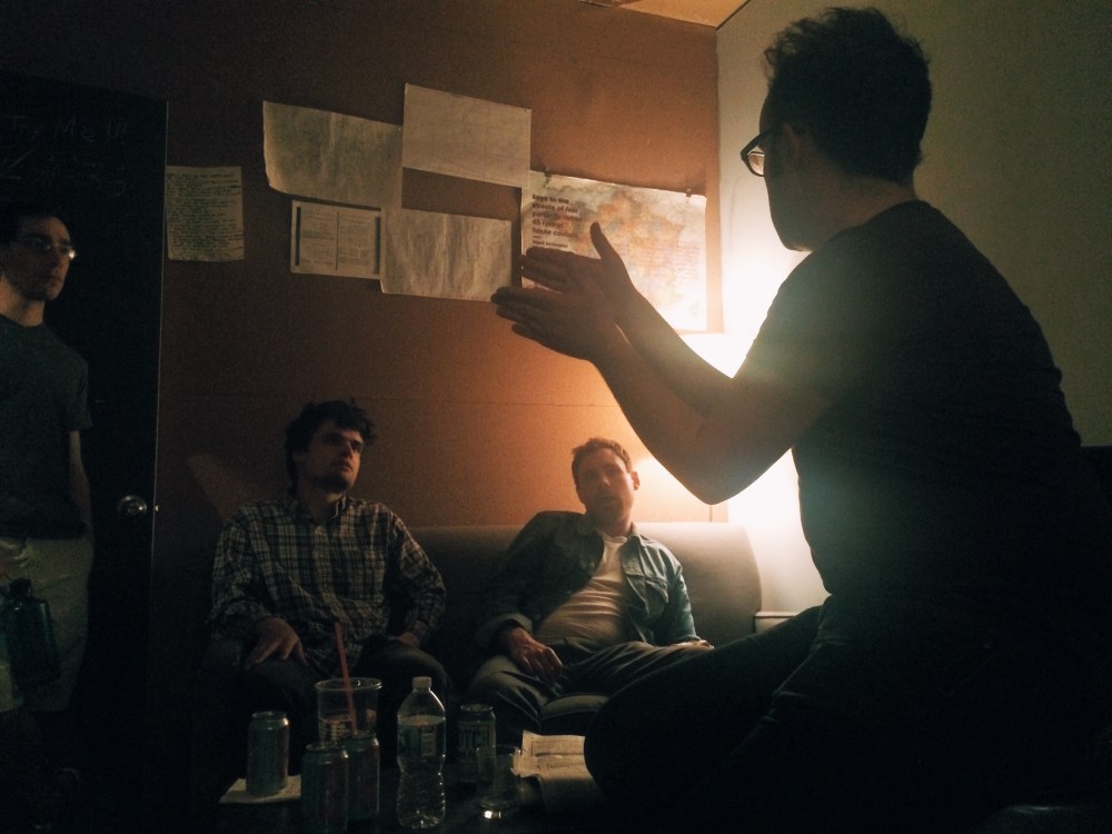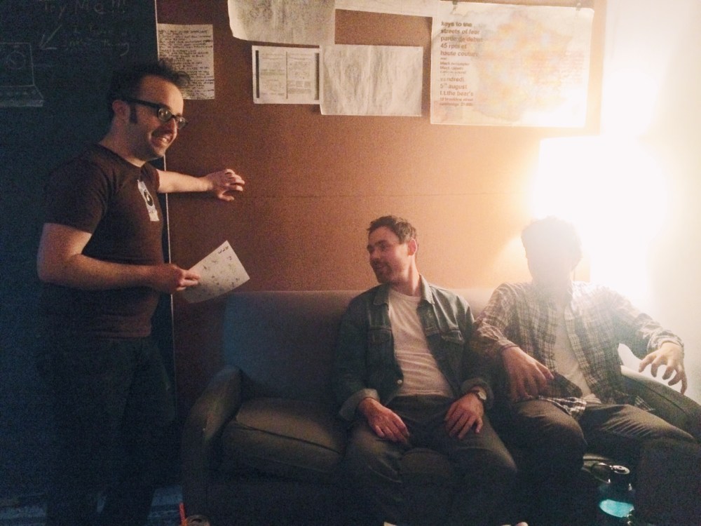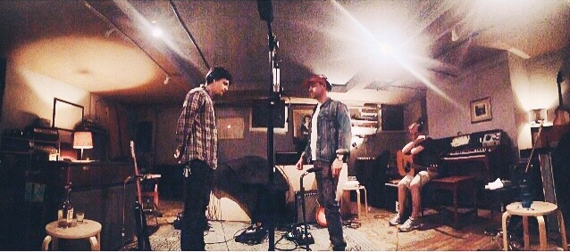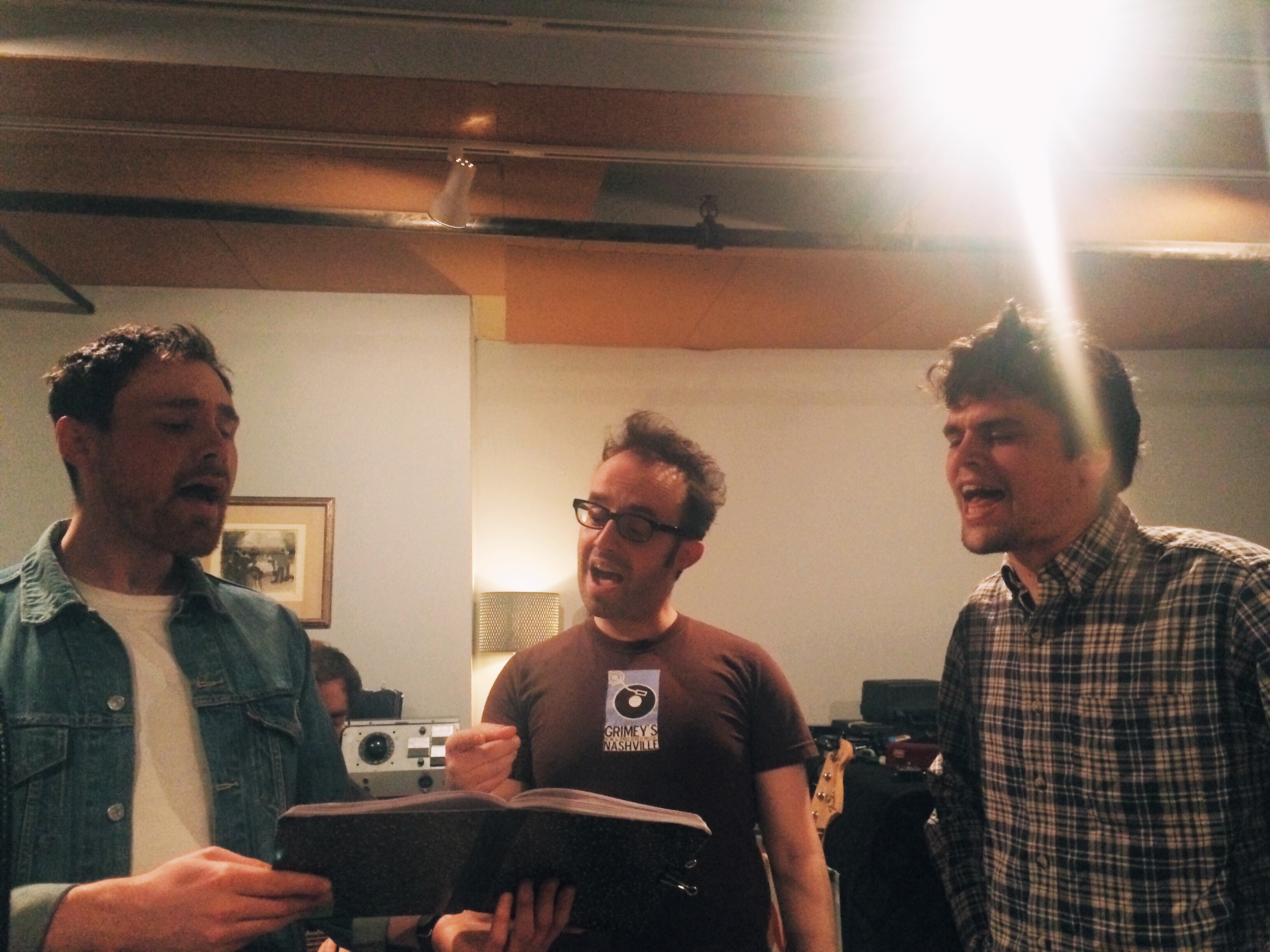 Jack, Elio and Tyler figuring out background vocals for the tune “Time Out”.