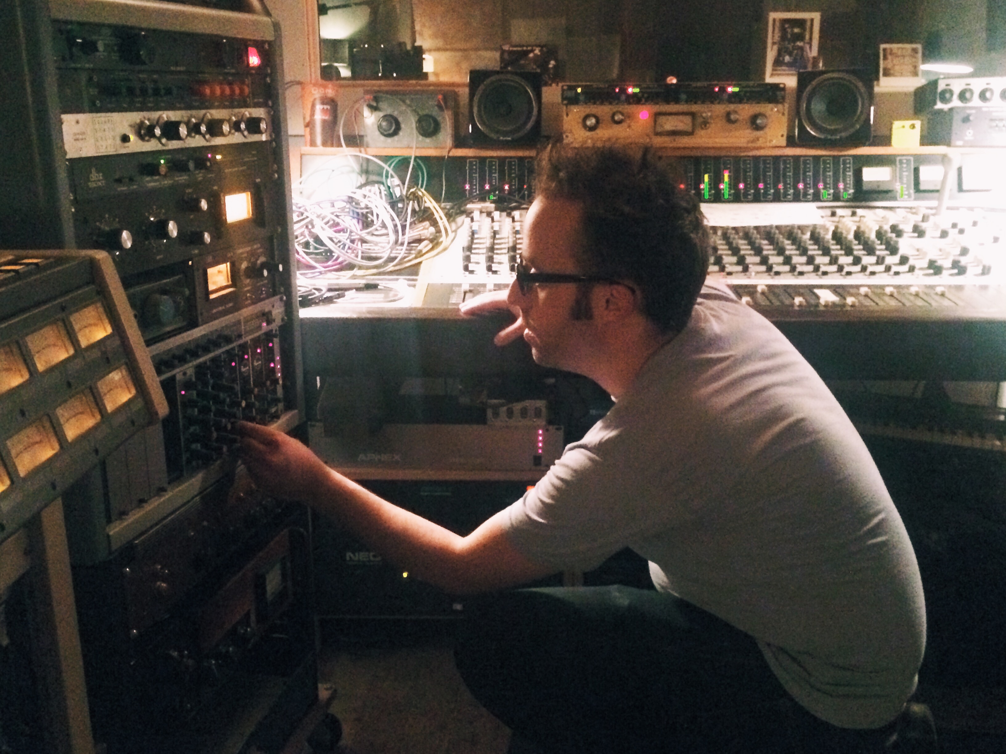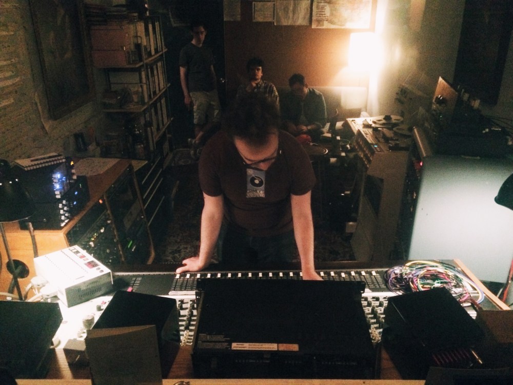 Engineer Elio DeLuca recording the band in the Soul Shop’s control room.