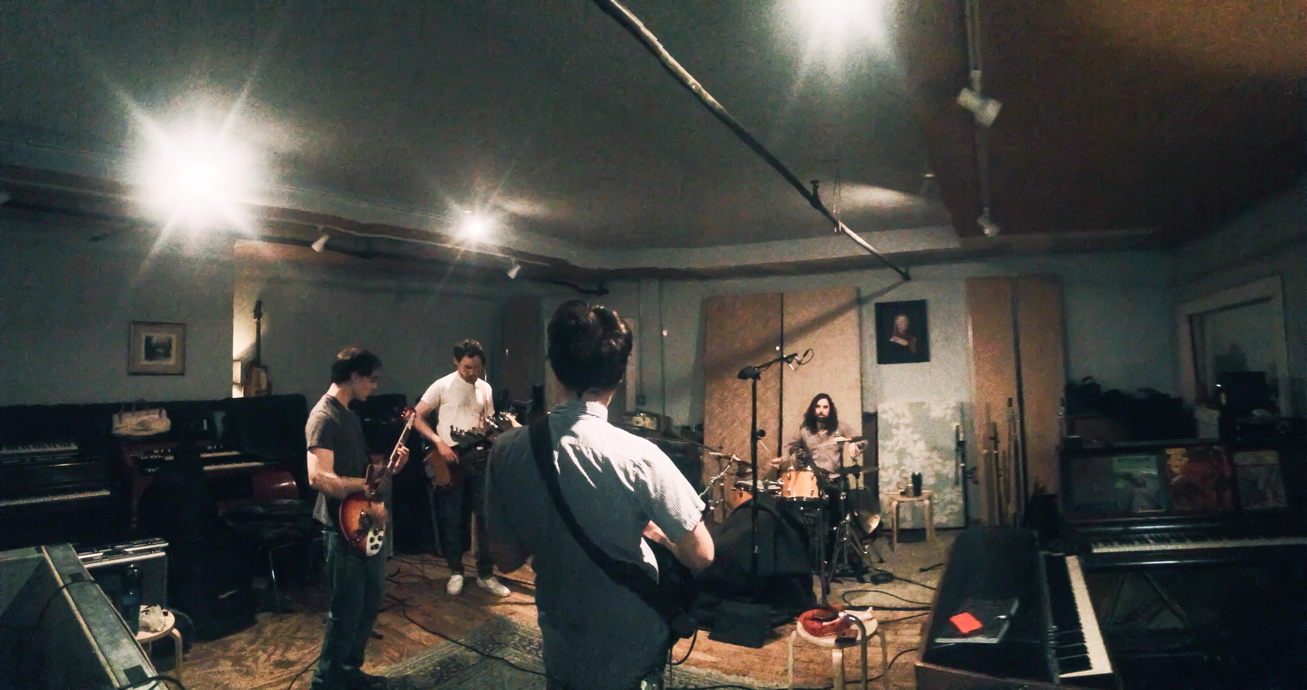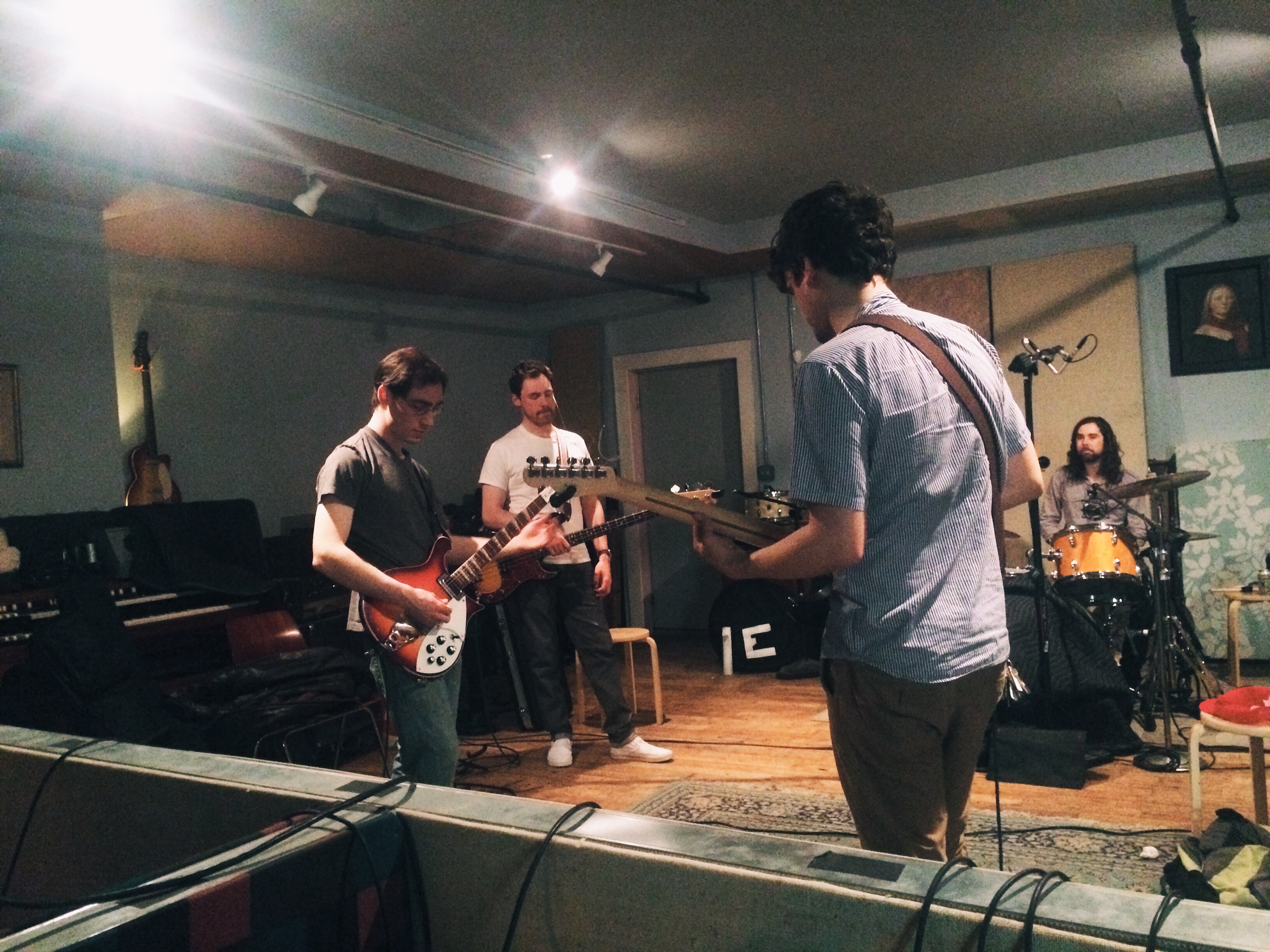 The band tracked all five songs on Saturday, recorded overdubs including percussion, organ and background vocals, on Sunday and mixed on Monday. The session with engineered by the Shop’s engineer Elio DeLuca, with help from custom, professionally tailored outboard gear and amplifiers by Patrick Grenham. Three of the songs are power pop songs songs while the fourth is a slower tune featuring Burdwood’s girlfriend Natalie Kovalcik as a background vocalist. The fifth song is a poem that Burdwood wrote this year backed up by the rest of band playing freestyle underneath it in a Doors-esque style. While the future of the tracks aren’t set in stone, the band expects the weekend’s bounty will become the first side of a full-length LP, which would be the band’s first full-length record.