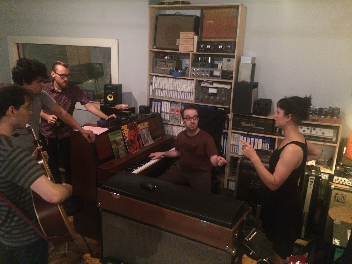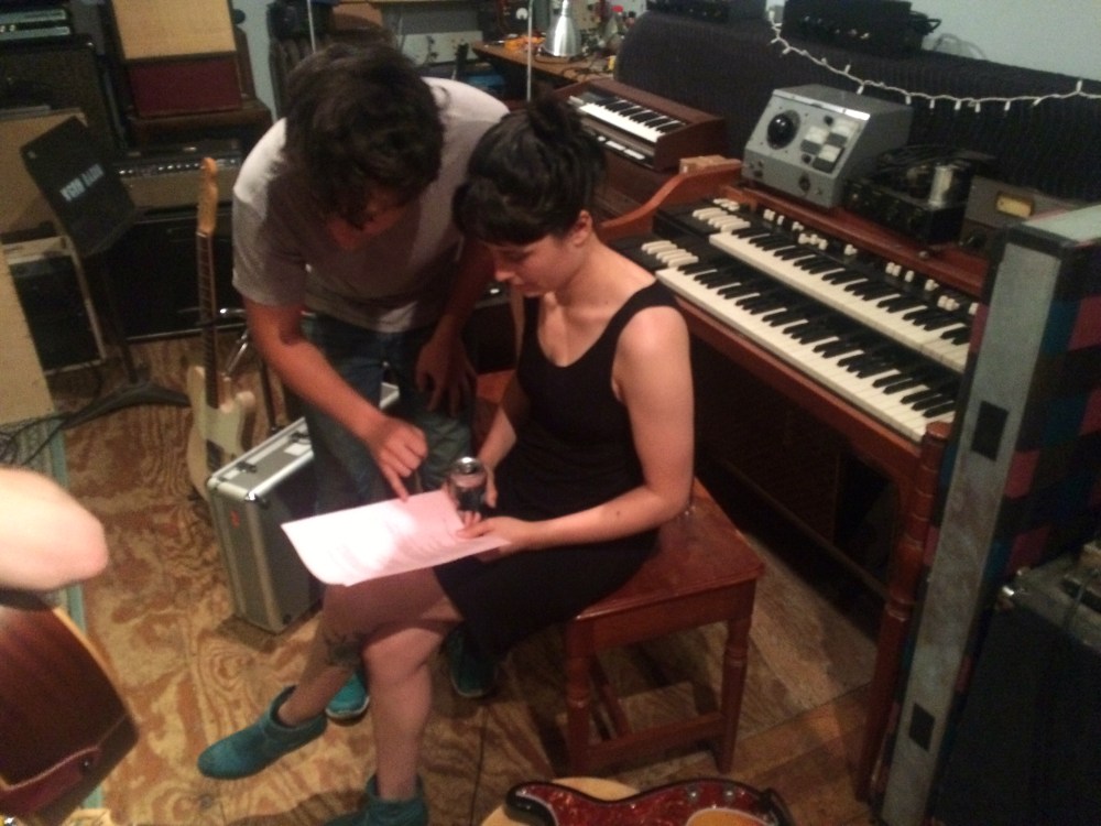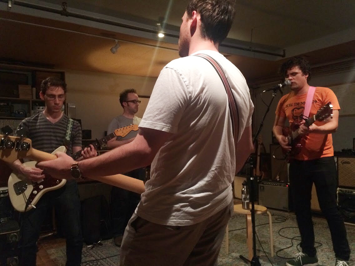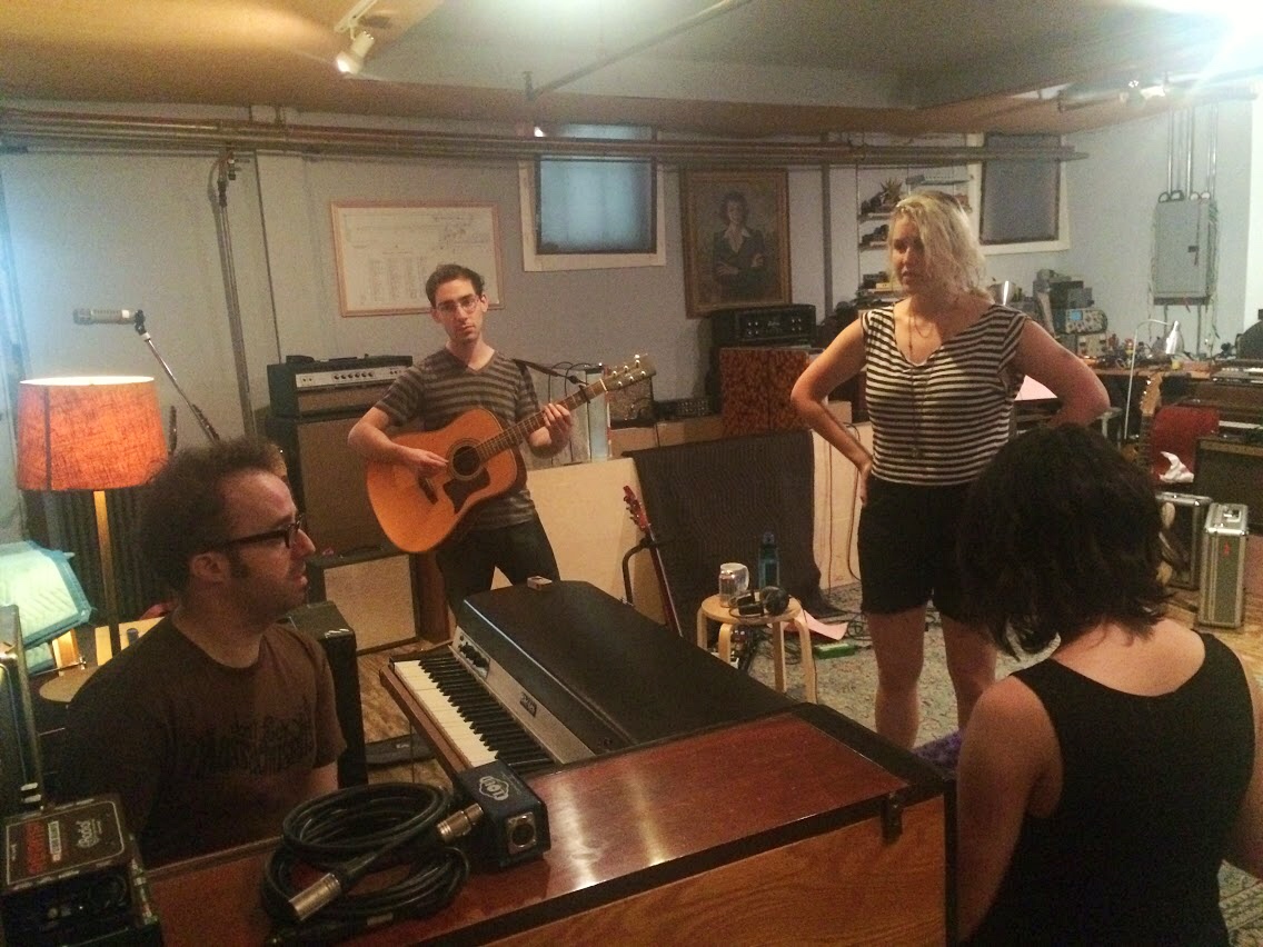 Bellwire and DeLuca spent Friday night deep in pre-production: sorting out arrangements and choosing the desired sounding amplifiers and instruments for each song. On Saturday, the band tracked all four songs live to 16-track tape. The band played all together, all at once in the Shop’s custom-built live room. On Sunday, background vocalists provided their ranges to “Grace Stay” and “Dreamin'” while legendary pedalsteel guitar player Jonnee Earthquake provided soothing sounds to all four tracks. Brothers Michael and Jack Holland also recorded bass and guitar overdubs and Burdwood laid down his lead vocals for all four tracks. The band returned on Monday afternoon to finish overdubs on all the tracks. Bellwire and DeLuca have plans to mix the tracks in mid-October once DeLuca returns from a national headlining tour with Titus Andronicus.