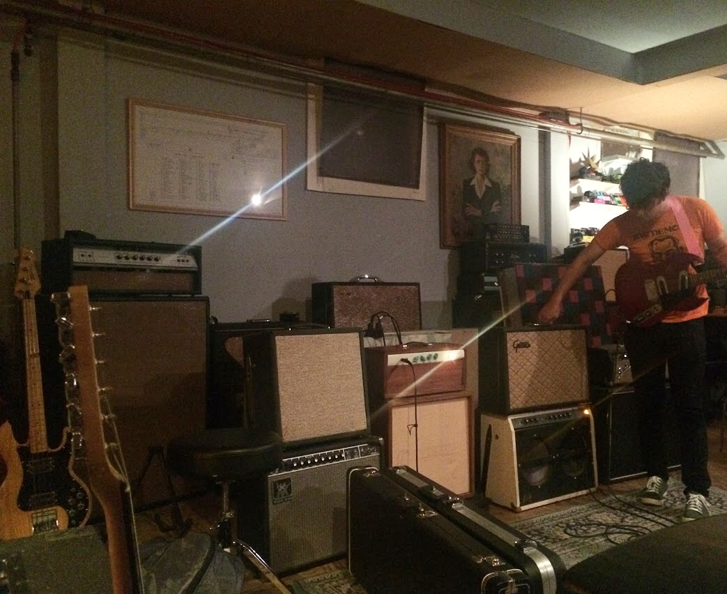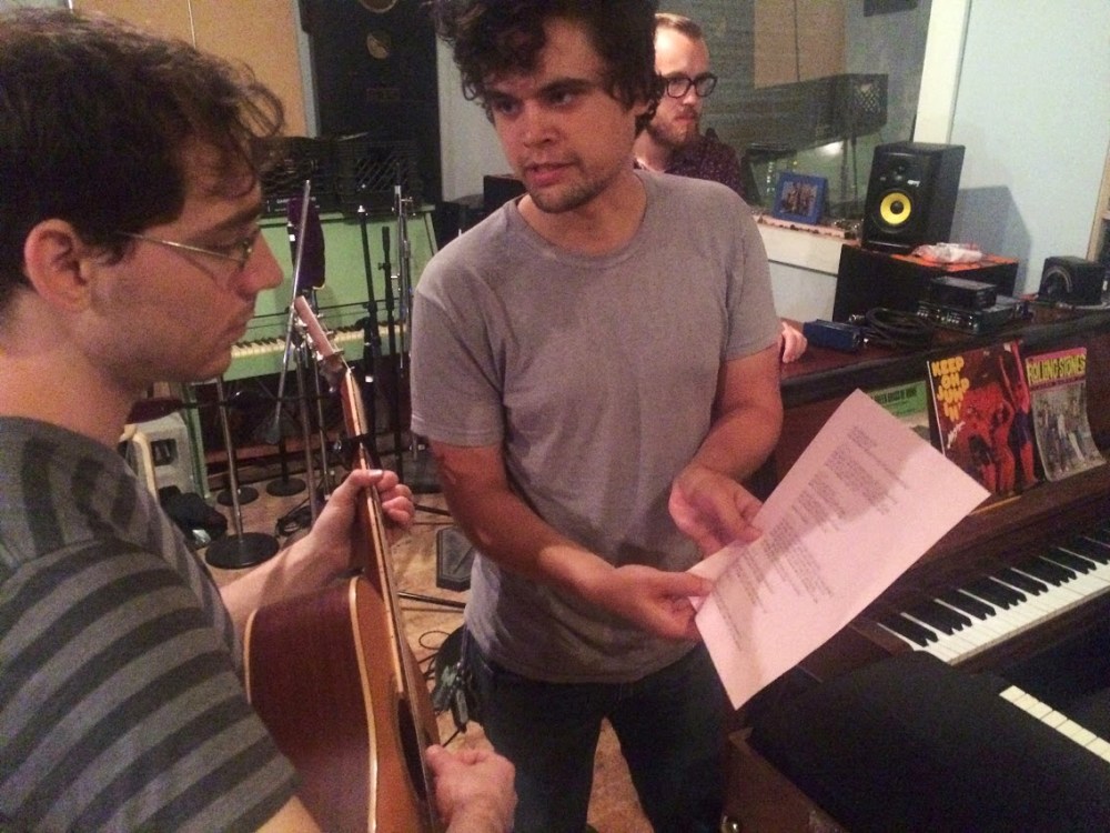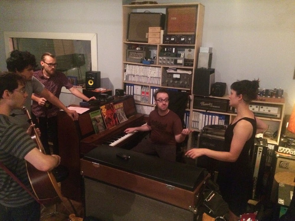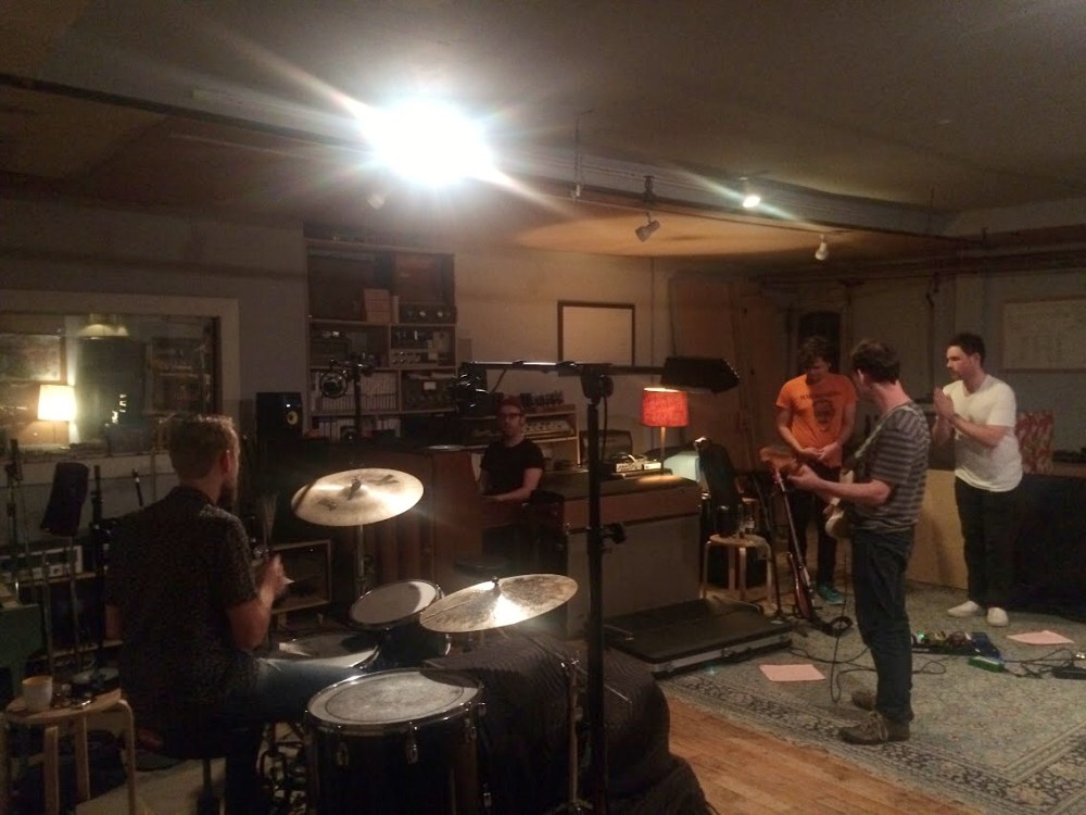 Bellwire and DeLuca spent Friday night deep in pre-production: sorting out arrangements and choosing the desired sounding amplifiers and instruments for each song. On Saturday, the band tracked all four songs live to 16-track tape. The band played all together, all at once in the Shop’s custom-built live room. On Sunday, background vocalists provided their ranges to “Grace Stay” and “Dreamin'” while legendary pedalsteel guitar player Jonnee Earthquake provided soothing sounds to all four tracks. Brothers Michael and Jack Holland also recorded bass and guitar overdubs and Burdwood laid down his lead vocals for all four tracks. The band returned on Monday afternoon to finish overdubs on all the tracks. Bellwire and DeLuca have plans to mix the tracks in mid-October once DeLuca returns from a national headlining tour with Titus Andronicus.
